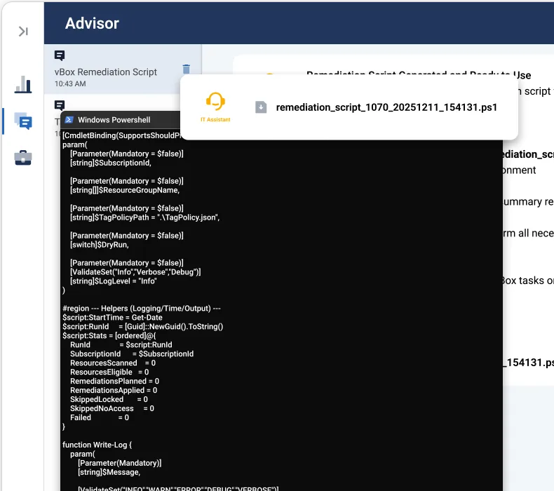 The vBox Suite brings together analysis, prioritization and execution to support full Azure management.