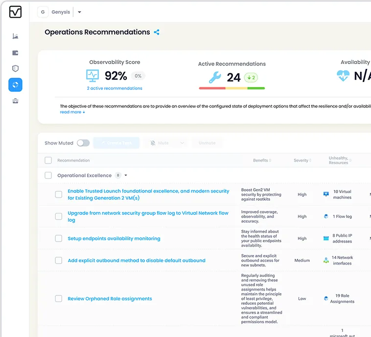 Effective Azure management and governance requires a comprehensive, consistent way to understand the environment, prioritize improvements and measure progress. vBox provides this structure by consolidating insights and organizing work based on impact and priority.